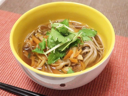 しめじとにんじんの蕎麦