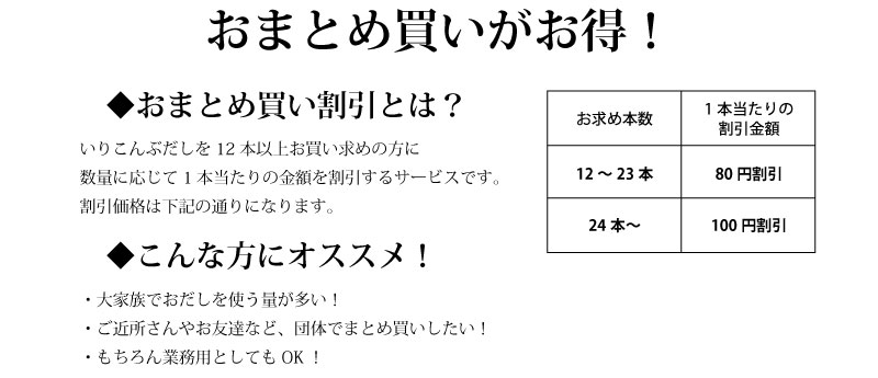 沢山のだしを作ることができる、お得な濃縮タイプです。